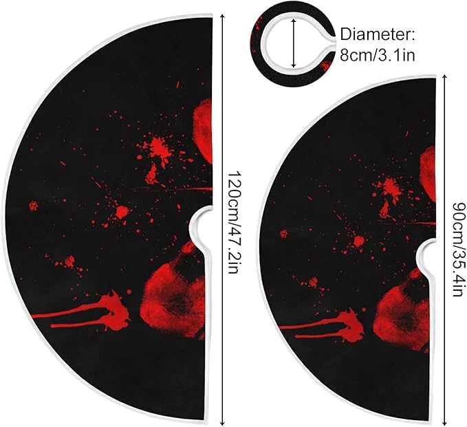 Halloween Bloody Hand Paw Spooky Tree Skirt, Seasonal Tree Mat Holiday Party Supplies Ornaments Indoor Outdoor Decorations for Tabletop Trees 47.2 Inches