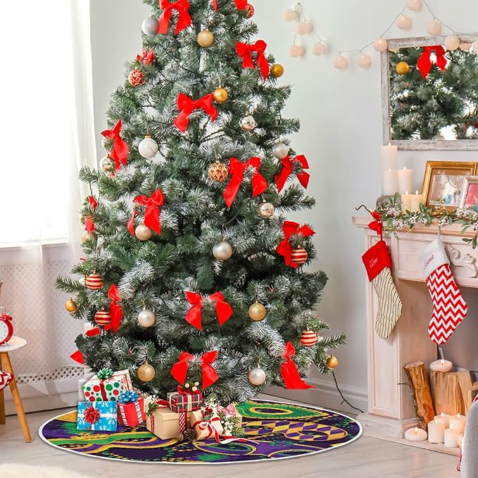 Mardi Gras Colorful Mask Tree Skirt, Seasonal Tree Mat Holiday Party Supplies Ornaments Indoor Outdoor Decorations for Tabletop Trees 35.4 Inches