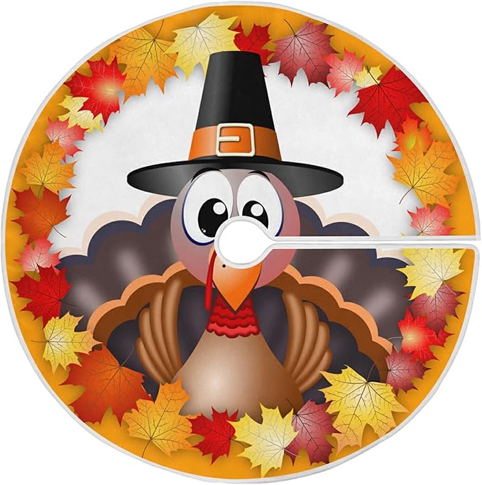 Thanksgiving Turkey Maple LeafTree Skirt, Seasonal Tree Mat Holiday Party Supplies Ornaments Indoor Outdoor Decorations for Tabletop Trees 35.4 Inches