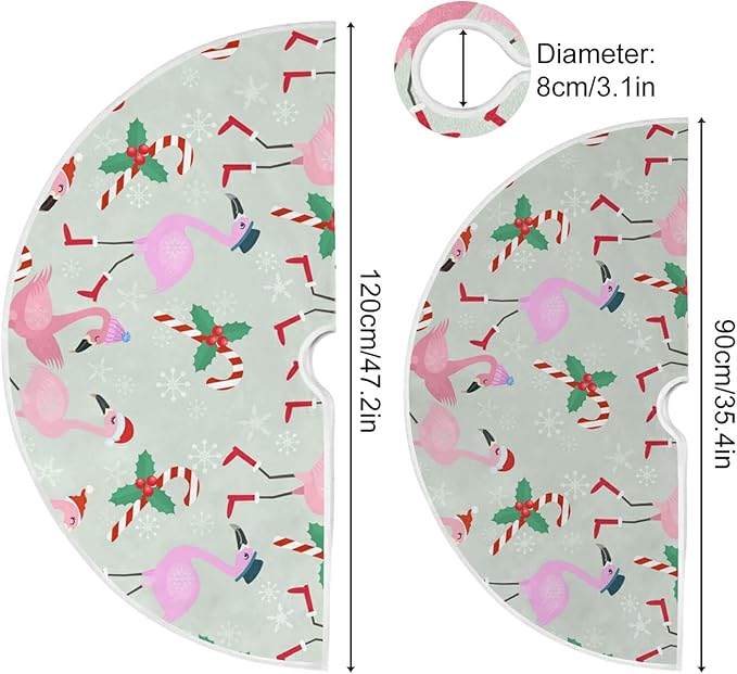 Christmas Flamingo Candy Tree Skirt, Seasonal Tree Mat Holiday Party Supplies Ornaments Indoor Outdoor Decorations for Tabletop Trees 35.4 Inches