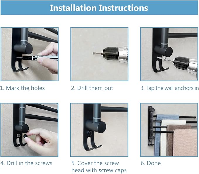 - ROTATES 180°- Multiple swivel arms allows you to spread out the desired arms for easy drying, and swivel them back against the wall to save space.