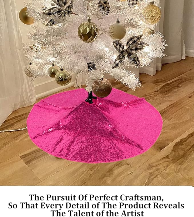 Partisout 24Inch Sequin Tree Skirt Hot Pink Christmas Tree Skirt 24in Tree Skirts for Slim Trees Xmas Tree Skirt Hawaii Tree Skirt Rustic Tree Skirt Cartoon Tree Skirt Elegant Halloween 24 inch