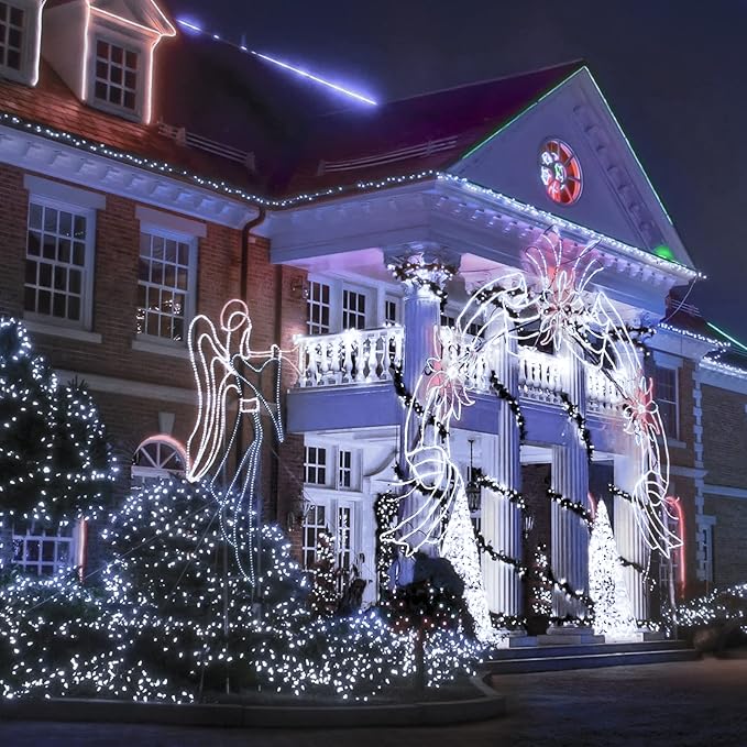 - [8 Modes & Timer Function] The white Christmas outdoor lights have 8 lighting modes for you to choose from. And humanized timing function saves the trouble of turning on and off the lights every time. LED Christmas lights outdoor have timer, press the button for 3 seconds to set and reset timer. The green light is ON means the timer is ON.