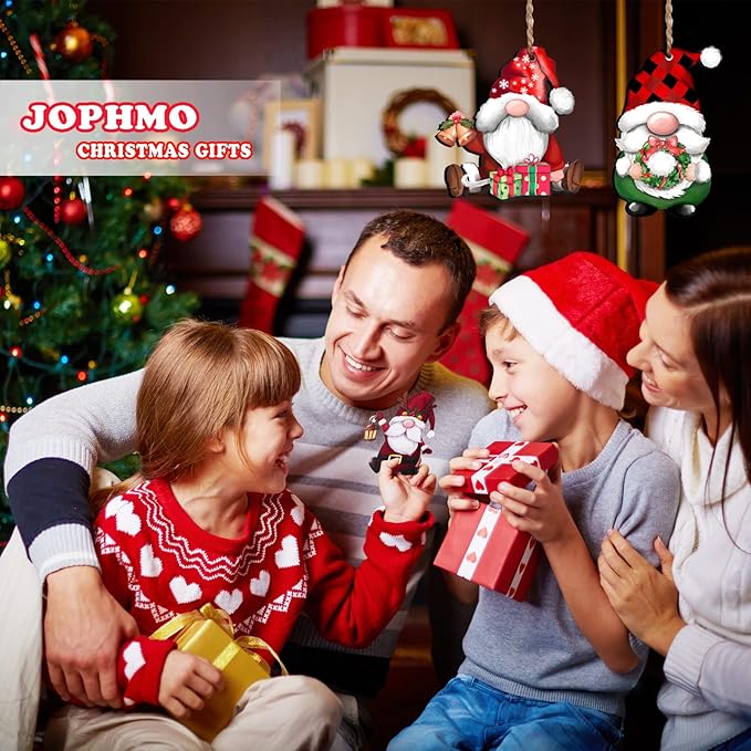 - New Designed Christmas Gnome Wooden Ornaments -- 24 PCS gnome wooden slices with exquisite workmanship in 12 different styles are made of high-quality wood, painting in front and empty at back.