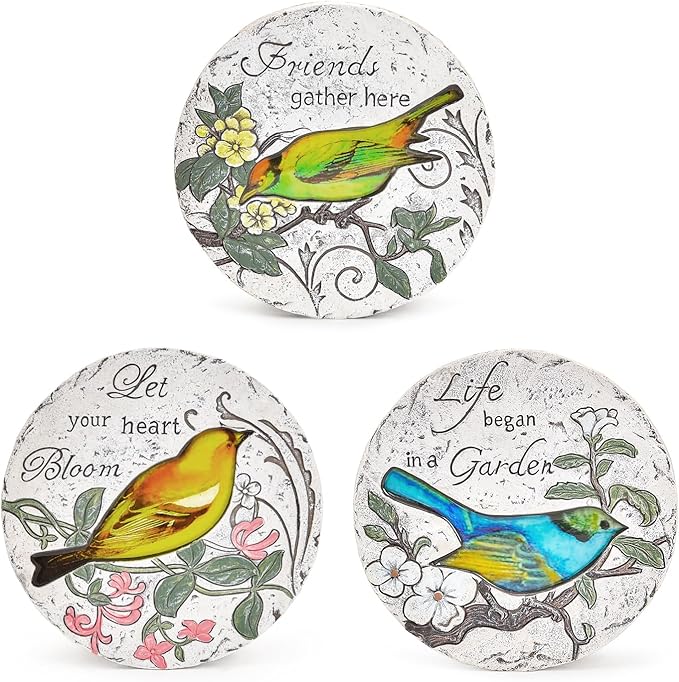 Sungmor 3PC Pretty Garden Stepping Stones, 9.5" Large Concrete Decorative Stones with Beautiful Pattern, Unique Outdoor Lawn Accents, Yard Walkway Flower Bed Wall Shelf Welcome Friends Decorations