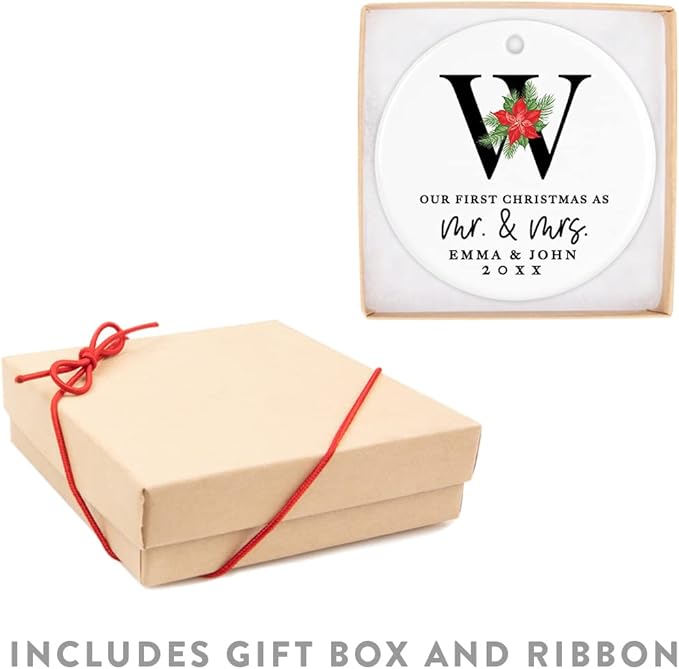 - Gift-Ready with Elegant Packaging: Whether it’s for you or as a thoughtful gift for newlywed friends or family, this custom christmas ornament comes beautifully packaged and ready for gift-giving. The included ribbon makes it easy to hang, adding a touch of elegance to any tree. It's ideal for wedding ornaments for bride and groom 2024.