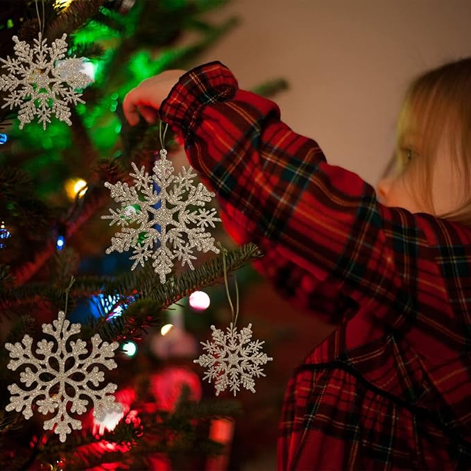 - DESIGNED TO HANG: Big Christmas snowflake ornaments have hole at top for easy hanging except some that are only with the hollow design but they're also able to be hung easily with the string included
