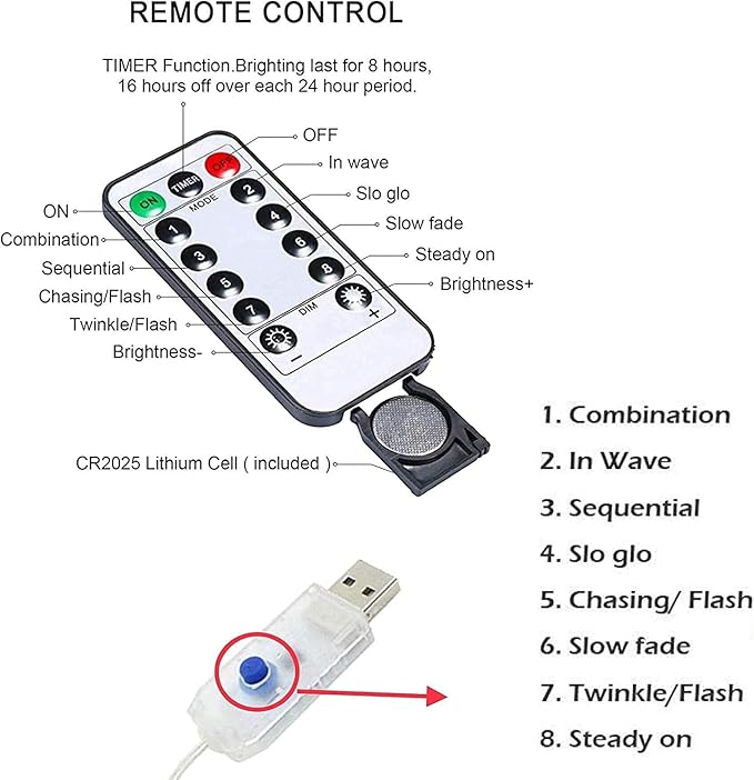 - Timer and remote control - You can easily use the remote to turn on/off the lights, adjust the brightness, set them timer auto turn on/off.3 modes of timer settings : 6 Hours ON, 18 Hours OFF