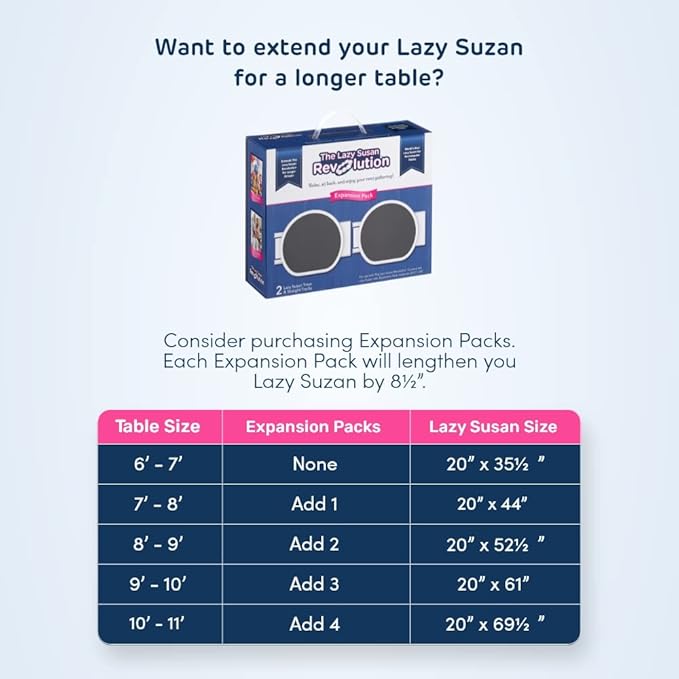 - โพ๏ธ EASILY EXPANDABLE FOR ANY TABLE SIZE- This lazy susan turntable is easily expandable. Extra trays, which are available separately, can be added. The lazy susan extension allows you to extend your Lazy Susan Revolution to any table size.
