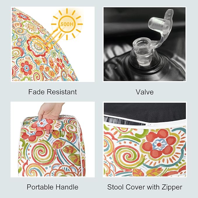 LVTXIII Indoor/Outdoor Inflatable Ottoman, All Weather Round Footrest Stool D21”x H9”, Portable for Patio Garden Camping or Home-Flower Multi