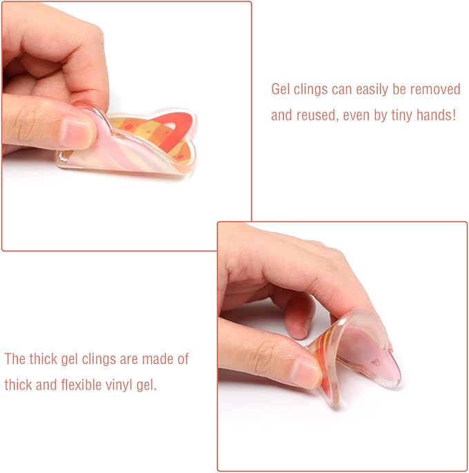 - Note:Outer space thick gel clings are not edible. These thick gel window clings are suitable for children 5 years and older to play, and there is a risk of suffocation. They need to be accompanied by an adult when playing.
