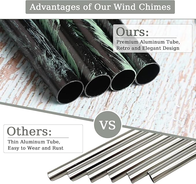 - PREMIUM QUALITY AND RUSTPROOF-- Our bronze-green butterfly wind chimes are made of high-quality aluminum and thicken nylon braided rope. The wind chimes are easy to clean and the outer coating is not easy to fade and rust. In addition, this windchime rope is not easy to tangle. Aluminum wind chimes have a longer resonance time than other windchimes, resulting in a lasting musical melody.