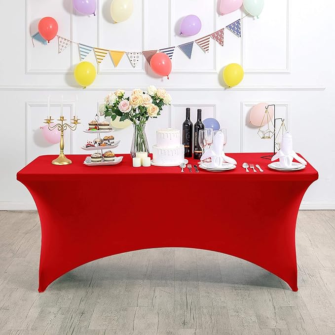 2Pack Spandex Table Cover for 8FT or 4ft or 6ft Table Universal Fitted Stretch Tablecloth for Party, Banquet, Wedding and Events-Red