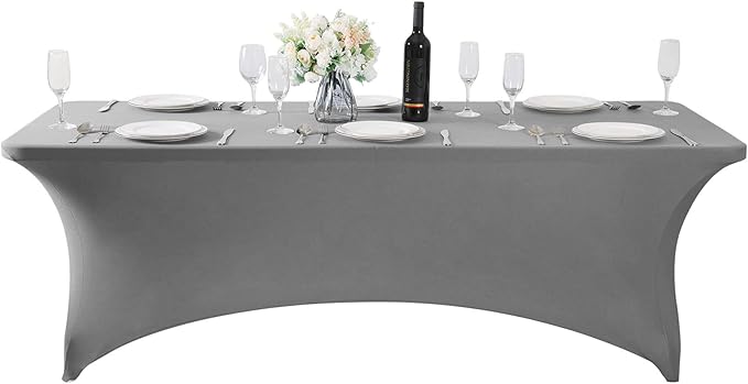 2Pack Spandex Table Cover for 8FT or 4ft or 6ft Table Universal Fitted Stretch Tablecloth for Party, Banquet, Wedding and Events-Gray