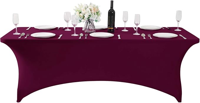 2Pack Spandex Table Cover for 8FT or 4ft or 6ft Table Universal Fitted Stretch Tablecloth for Party, Banquet, Wedding and Events-Burgundy
