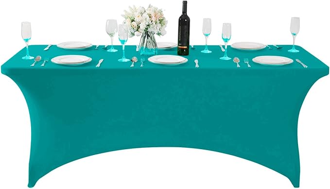 2Pack Spandex Table Cover for 6Ft or 4fT or 8ft Table Universal Fitted Stretch Tablecloth for Party, Banquet, Wedding and Events-Turquoise