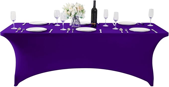 2Pack Spandex Table Cover for 8FT or 4ft or 6ft Table Universal Fitted Stretch Tablecloth for Party, Banquet, Wedding and Events-Purple
