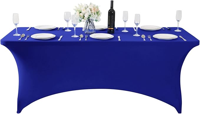 2Pack Spandex Table Cover for 8FT or 4ft or 6ft Table Universal Fitted Stretch Tablecloth for Party, Banquet, Wedding and Events-Royal Blue