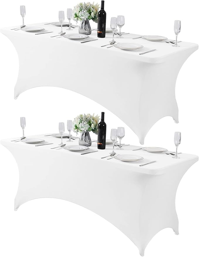 2Pack Spandex Table Cover for 6Ft or 4fT or 8ft Table Universal Fitted Stretch Tablecloth for Party, Banquet, Wedding and Events-White
