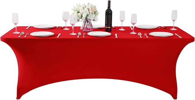 2Pack Spandex Table Cover for 6Ft or 4fT or 8ft Table Universal Fitted Stretch Tablecloth for Party, Banquet, Wedding and Events-Red