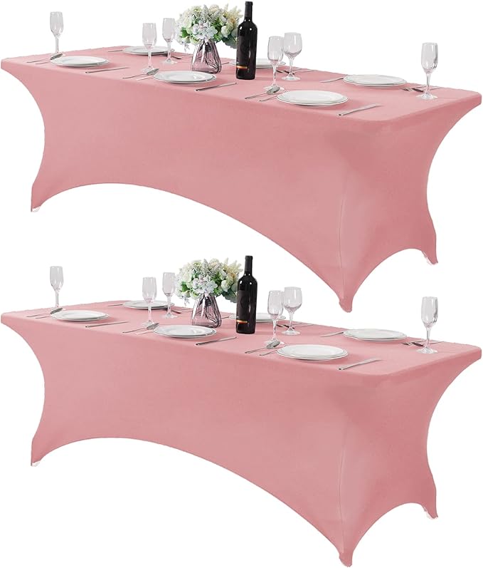 2Pack Spandex Table Cover for 8FT or 4ft or 6ft Table Universal Fitted Stretch Tablecloth for Party, Banquet, Wedding and Events-Dusty Pink