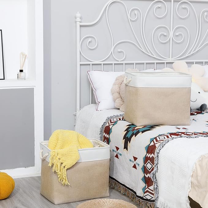 - [Multipurpose Storage] These large linen storage baskets for organizing provide an efficient solution in your home, office or travel to meet many storage needs such as organizing clothes, towels, blankets, toys, baby products, pet products, magazines, newspapers, camping tools, etc. Its storage capacity can keep the family tidy and beautiful, shelf baskets for organizing closet are a wonderful choice