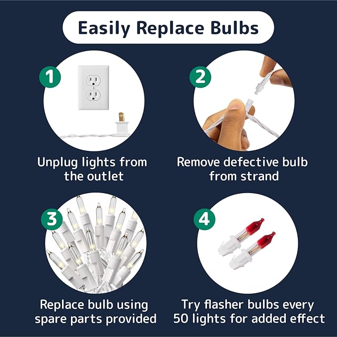- Complete Holiday Light Set: Includes 300 white string lights on 60 ft white wire with 6 twinkle bulbs, 4 spare bulbs, and 6 fuses; perfect for decorating trees, patios, fences, or festive displays