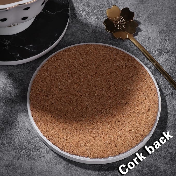 - Non-slip back coaster design: The coaster back adopts Cork Base to achieve good anti-slip and help prevent the porcelain from scratching the table or countertop, to protect your expensive wooden table.