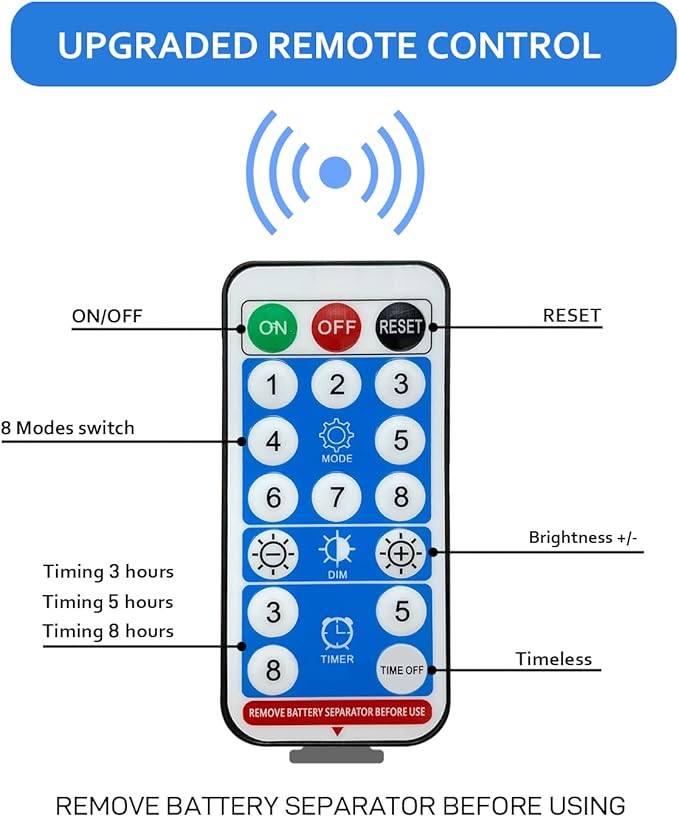 - [Convenient Remote Control] These garden decor solar lights come with a remote control for 8 different flash modes and 3 different brightness levels. Different lighting effect combinations create a magical atmosphere. Build with automatic light sensor function, the sparkler solar lights automatically on at night & off during days. You can also use the remote to set the lighting time for 3/5/8 hours.