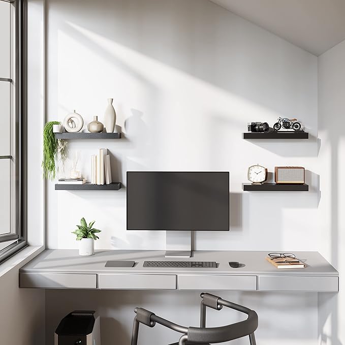 - GREAT FOR ANY ROOM: Our wood floating shelves are made of MDF with a frosted surface texture for a mordern feel that blends perfectly into a variety of different scenes; Having this small floating shelf not only for its decoration effect, but also for its high practicality; It can be used for organizing all household rooms, such as bedroom, living room, study, toilet, cloakroom, even kitchen and warehouse