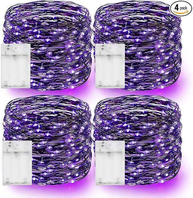 Dazzle Bright Purple Fairy String Lights, 4 Pack Total 80FT 240LED Copper Wire Battery Operated Waterproof Lights, Halloween Decorations for Indoor Home Outdoor Patio Yard Party Decor