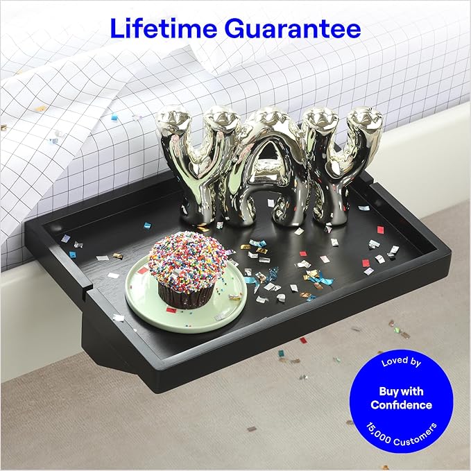 - EFFORTLESS NO-TOOL INSTALLATION: Our intuitive design eliminates the need for complex instruction manuals. The BedShelfie caddy tray is incredibly versatile, serving as a headboard shelf, sofa tray, changing table, or cord organizer. It is particularly popular with city dwellers, as one of dorm room essentials for college students, a room decor, a teen room nightstand or a kids side table. Safely holding up to 35lbs, this floating nightstand can hold a 13-inch MacBook, phone, water, and more!