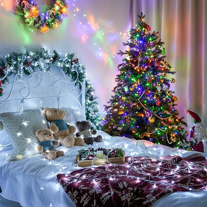JMEXSUSS 600 LED Color Changing String Lights Plug in, 168FT White & Multicolor Christmas Lights with Remote, Christmas String Lights Outdoor Waterproof Clear Wire for Tree Xmas Decor