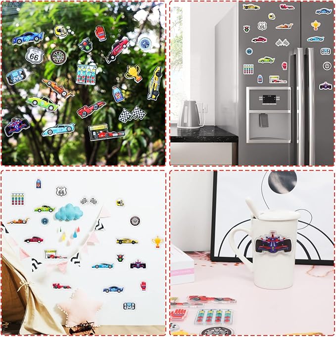 - Wide range of uses: racing car thick gel clings is very suitable for pasting on car windows, refrigerators, walls, classrooms, daycares, bedrooms, game rooms, etc.! These gel clings can also decorate your birthday parties, family gatherings, anniversaries Or racing car parties, etc.