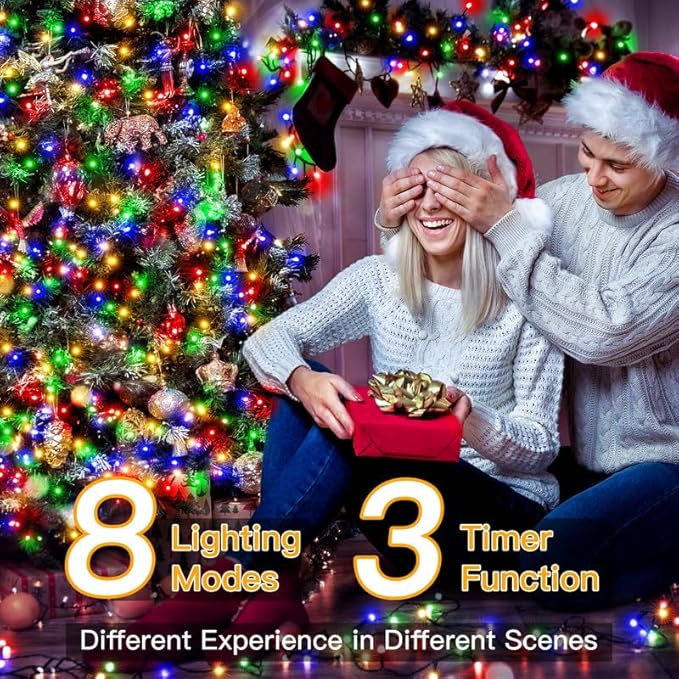 - 8 Lighting Modes: Steady on, in wave, sequential, slo-glo, chasing flash, fade, twinkling flash, and combination. Just use the remote control to switch different modes for a merry Christmas atmosphere