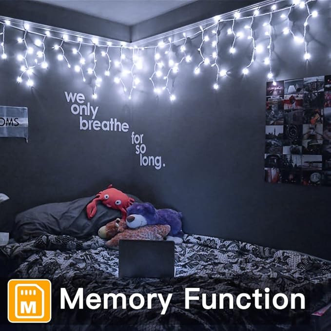 - 8 Modes with Remote & Memory: LED icicle lights offer 8 different lighting modes for you to choose. And thanks to the built-in memory chip, our Christmas light icicles will save your last time lights setting