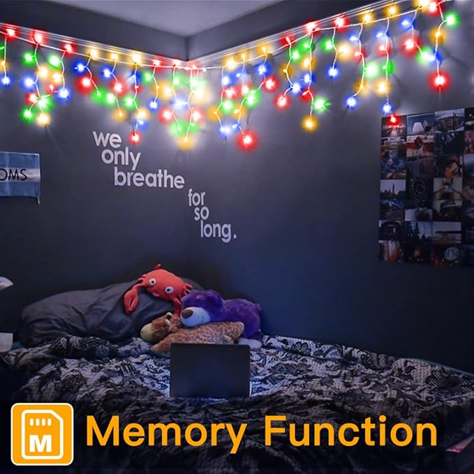 - 8 Modes with Remote & Memory: LED icicle lights offer 8 different lighting modes for you to choose. And thanks to the built-in memory chip, our Christmas light icicles will save your last time lights setting