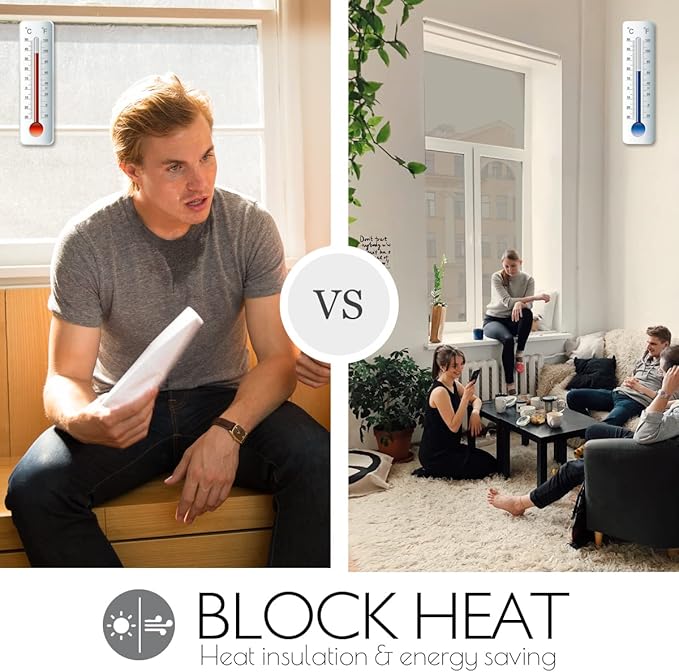 - UV BLOCKING & HEAT CONTROL – This anti-glare reflective window film is designed to sun blocking and keep out 90% of harmful UV rays and 85% of infrared rays which can damage the eyes and the skin. Heat insulation window tinting film for home can save energy for intense summers, and provide coverage year round thus reducing expensive heating and cooling costs for your home.
