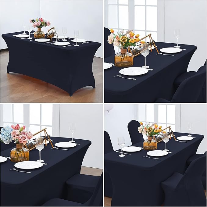 CWK 6FT Waterproof Stretch Spandex Table Cover for Rectangular Tables - Elastic Fitted Tablecloth for Folding Tables,Wrinkle Resistant Table Cloth for Parties, Weddings, Banquets & Events (Navy Blue)