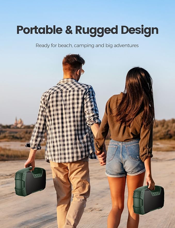 - Epic 32-Hour Playtime- Houl Zallee outdoor Bluetooth speaker delivers up to 32 hours of playtime on a single charge (Actual playtime may vary by the music content and sound volume). Enjoy loud sound with powerful bass and clear vocals at home, in the garage, or outside on the road. Its built-in large-capacity rechargeable batteries can charge phones or other devices, making it a great camping gift