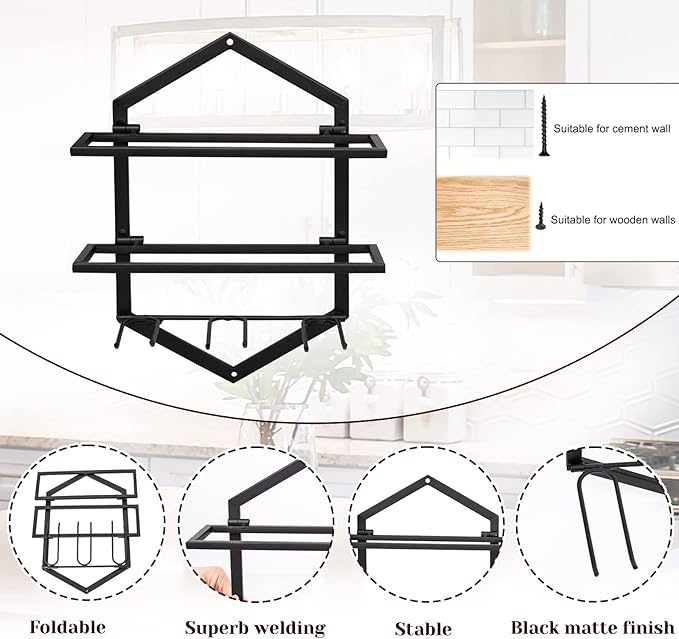 - 【Space Saver】Hanging design can save more countertop space, Wine bhottle rack with integrated storage shelf.It is enough to make room inside your cabinets, on your counter top and in your pantry closet.