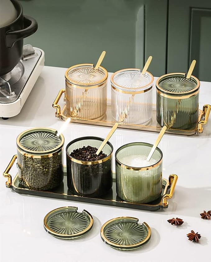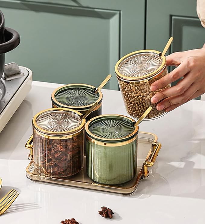 - ▲▲【Material】: Transparent thickened acrylic condiment container, made of PP plastic, equipped with 6 metal spoons and a practical tray with a handle, sturdy and corrosion-resistant, it can be effectively stored while decorating home life, adding color