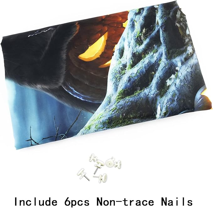 LB Halloween Tapestry Pumpkins Black Cat Dead Tree in Spooky Graveyard Full Moon Night with Witch Halloween Wall Hanging for Bedroom Living Room Dorm Decor 59x51 Inch