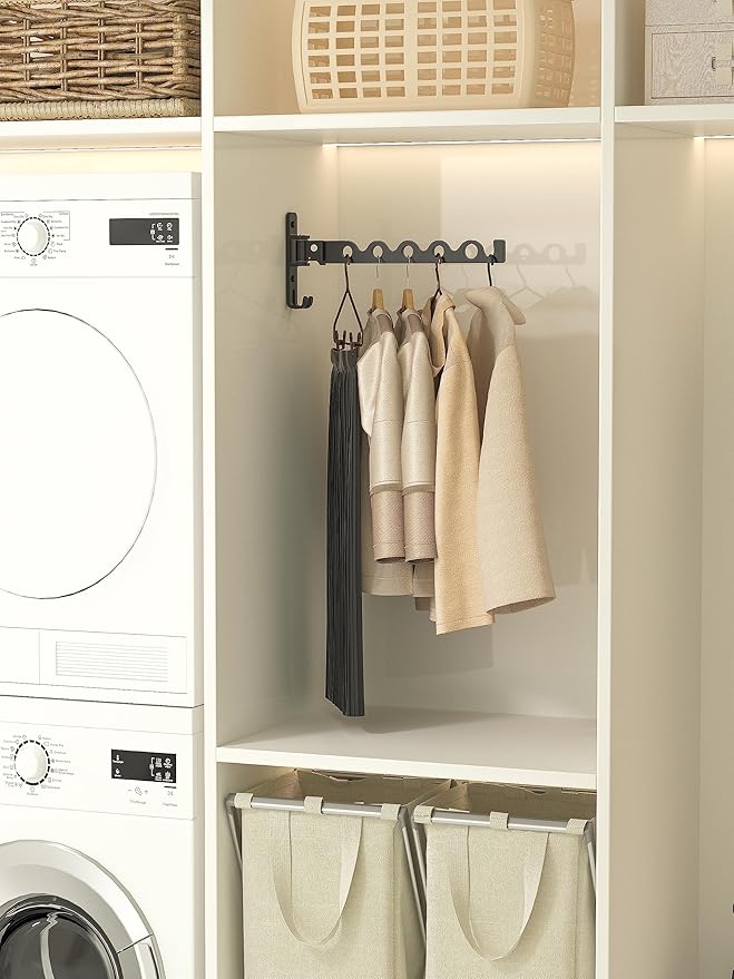 Dr.DJ Wall Hanger for Clothes, Coat Hanger Mounted Matte Black Retractable Clothes Drying Organizer Rack Garment Hooks Aluminium Folding Indoor Space Saver (2 Racks) Black