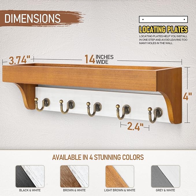- 【TWO-COLOR DESIGN】Stylish hanging key hangers is made from selected quality solid wood and fine paint, and the 5 retro hooks will satisfy your desire to hold as many items as possible. Creative brown and white color design can be hung in any corner of the room to attract attention, become a highlight of your sweet home.