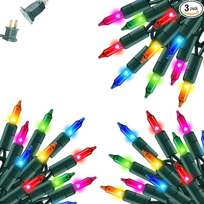 - Christmas Lights: Includes 3 x 20 ft light strings, 3 x spare fuses, and 12 x additional incandescent bulbs for a total of 100 bulbs