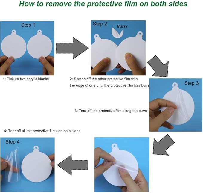 - Easy to Use: These acrylic Christmas ornament blanks are laser cutting, smooth edges, all acrylic ornaments have a protective film on both sides, just tear off the film before use. Each acrylic ornament comes with a hole, which is convenient for you to hang it on the place that you want.