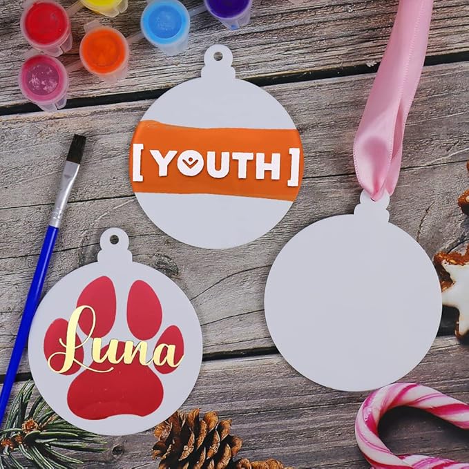 - DIY Fun Christmas Ornaments: these circle blanks acrylic are great for DIY Christmas ornaments. You can paint any pattern on it with your kids, families, boyfriend, girlfriend. Such as: "Merry Christmas" word, "I love you mom" words, any messages of this years milestone that you want to express. And hanging them on Christmas tree, create an unique Christmas ornaments and leave unforgettable memory.