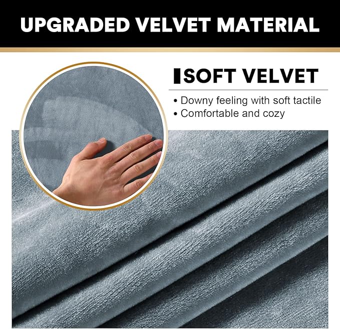 PrinceDeco Sectional Couch Covers 3 Pieces Velvet Sofa Covers L Shape Soft Couch Covers for Sectional Sofa Corner Sofa Cover Couch Cover for Dogs Washable (2 Seater + 1 Chaise,Stone Blue)
