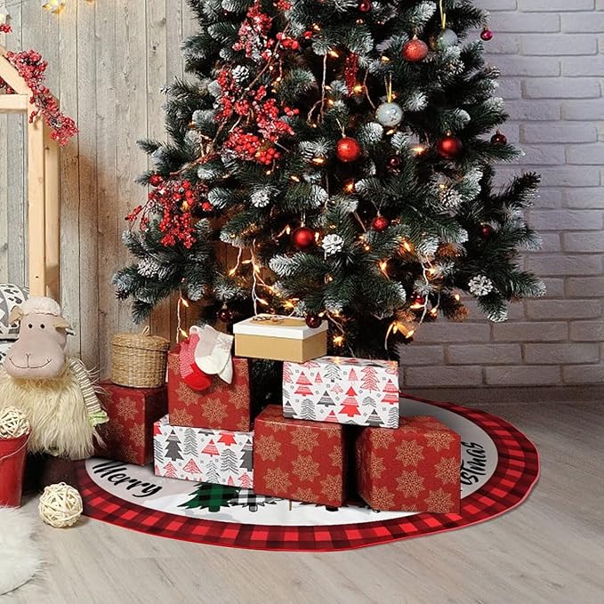 - ๐ ใPerfect Sizeใ : The ideal size design of 122 cm/48 inches, christmas tree skirt can easily fit any size tree, which is enough to hide the ugly tree frame and bringing you a strong christmas atmosphere.